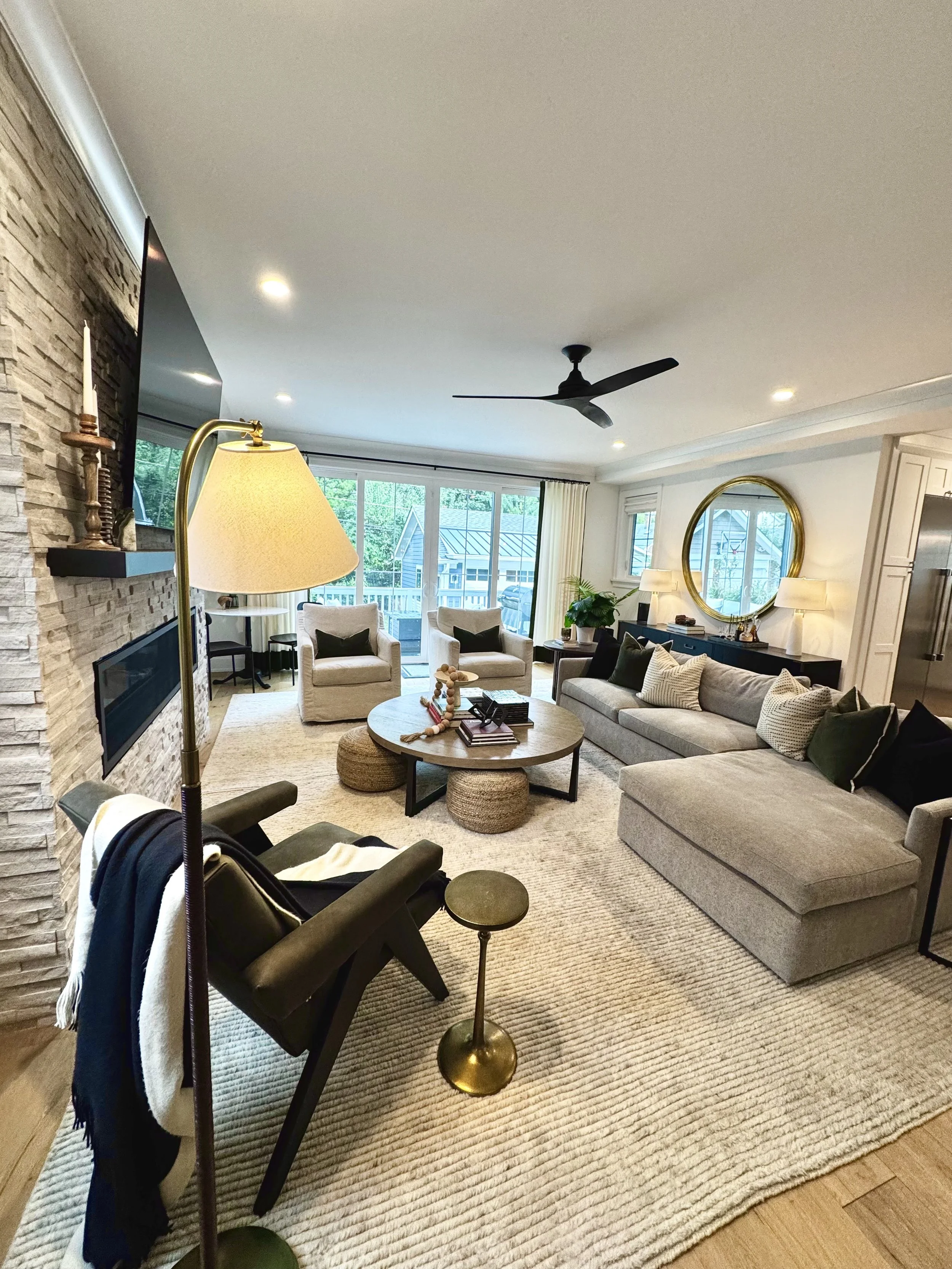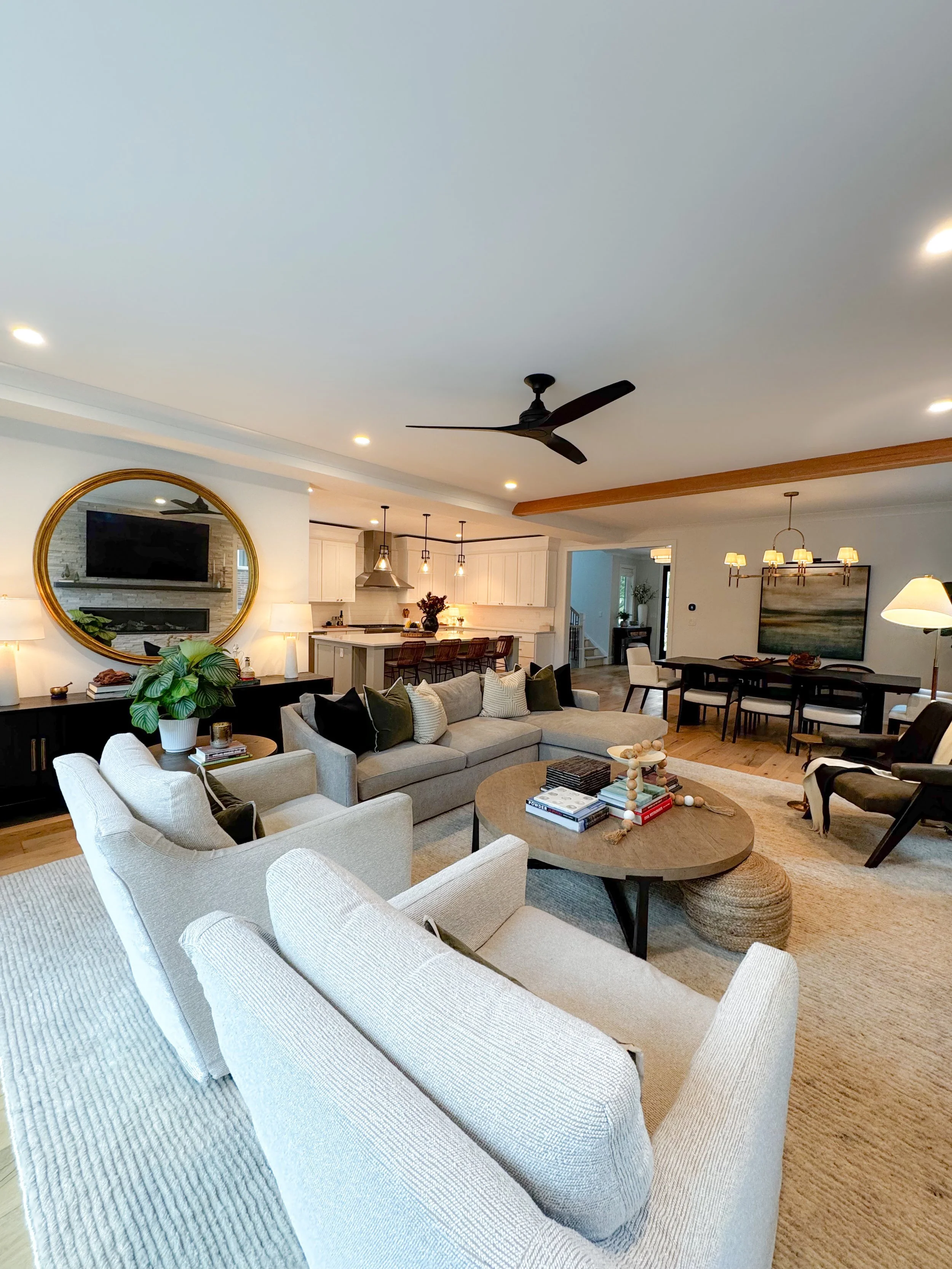 After purchasing this newly built home, the clients asked us to bring it to life with furnishings that felt timeless, modern, and cozy—a welcoming retreat designed for both relaxing moments and their large family gatherings.