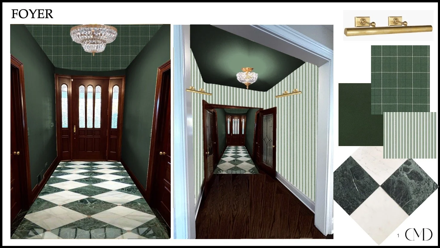 Elegant and classic Foyer update for our Victorian on the Green project | Barrington, IL